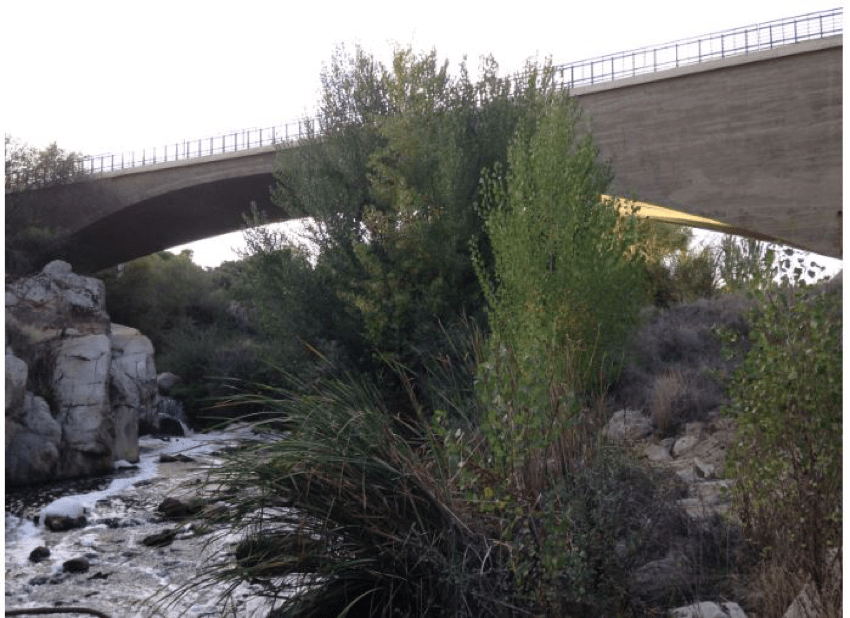 También del estudio de Fernández Casado, muy cerca de nosotros podemos apreciar el interesante puente sobre el río Guadarrama, que se construyó en los años 80 en la zona de Las Minas para liberar del tráfico rodado al precioso puente renacentista del siglo XVI que mandó construir Felipe II para cruzar el río en sus viajes entre Madrid y el Monasterio de El Escorial.